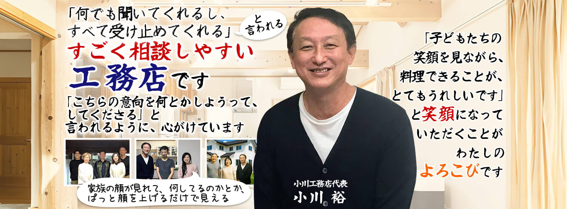 こんにちは!「何でも聞いてくれるし、すべて受け止めてくれる」と言われる、すごく相談しやすい工務店の小川裕(おがわひろし)です。